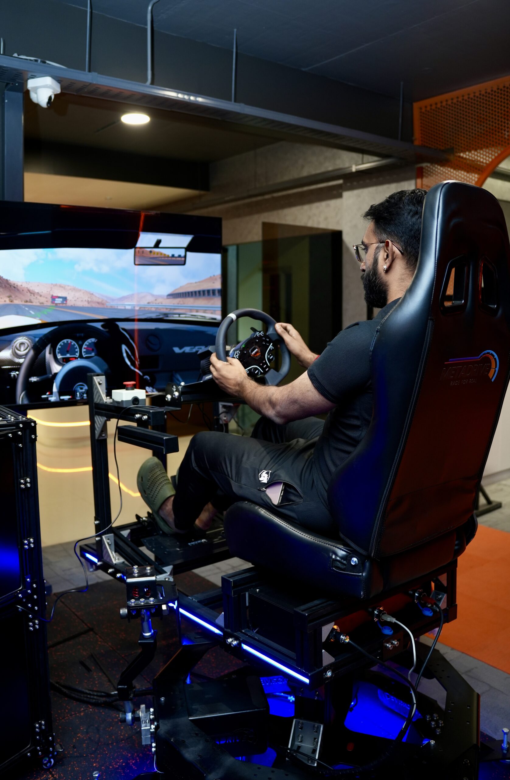 The cockpit is sculpted for immersive ergonomics — from precision-calibrated steering systems to responsive pedal assemblies and rigid motion platforms. The structure is engineered with reinforced frames to eliminate flex, ensuring uncompromised stability during high-intensity sessions.